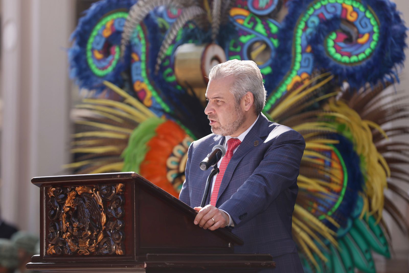 Sahuayo, Michoacán, 15 de marzo de 2023.- Al encabezar el acto del 198 aniversario de la municipalización de Sahuayo, el gobernador Alfredo Ramírez Bedolla, destacó que los cambios que se construyen en México tienen como base la transformación del bienestar del pueblo y de las comunidades.
