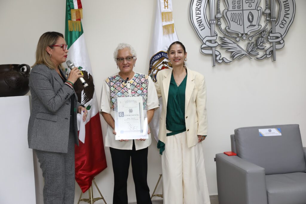 · La rectora Yarabí Ávila acompañó a la doctora Diana Alarcón González, ex colaboradora de la ONU, en la conferencia magistral que brindó a la comunidad nicolaita.