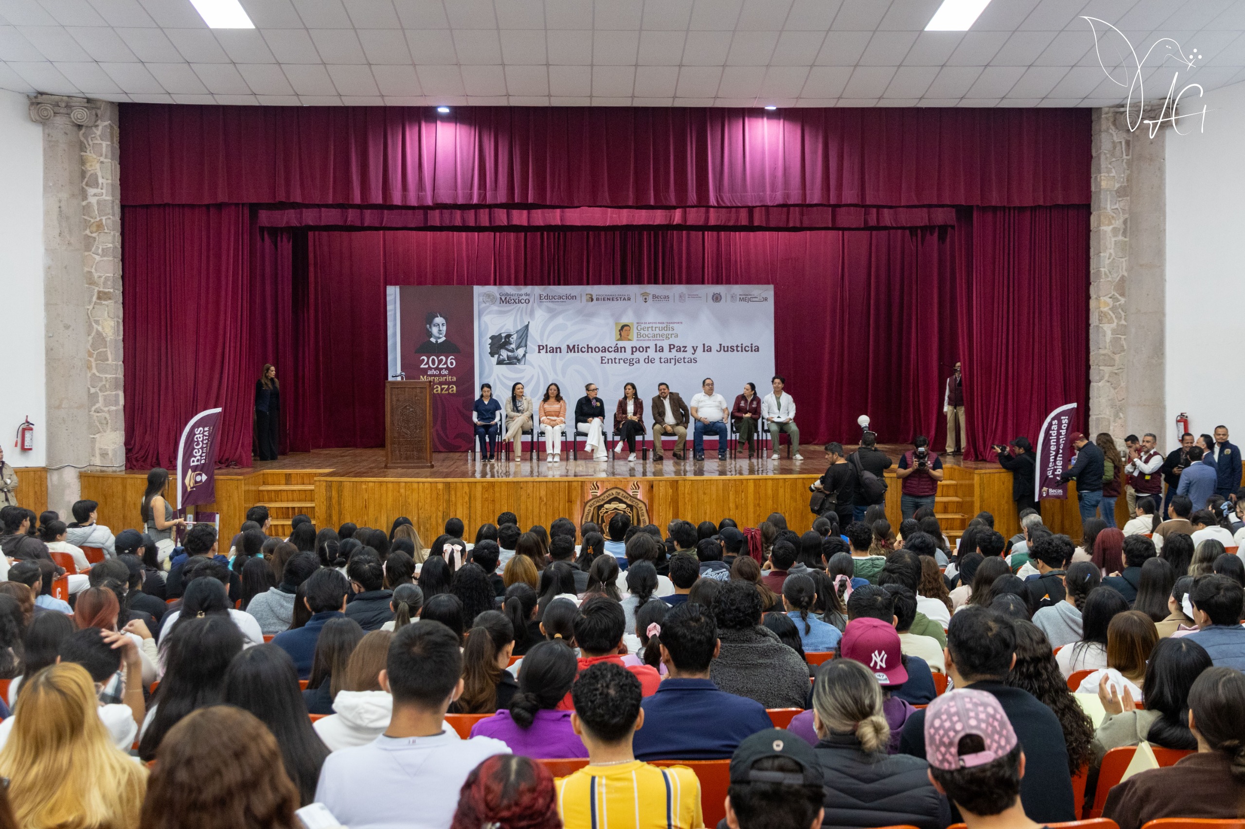 La secretaria de Educación, Gabriela Molina Aguilar, comentó que la beca Gertrudis Bocanegra no sólo simboliza mil 900 pesos bimestrales, sino la absoluta confianza que hay en un gobierno humanista y de transformación. Detalló que para las y los alumnos de la Facultad de Odontología se estarán entregando dos mil 345 becas, “nunca antes se había creído tanto en las juventudes, el presente y el futuro está en las aulas de la Universidad Michoacana de San Nicolás Hidalgo, enhorabuena y muchas felicidades”.