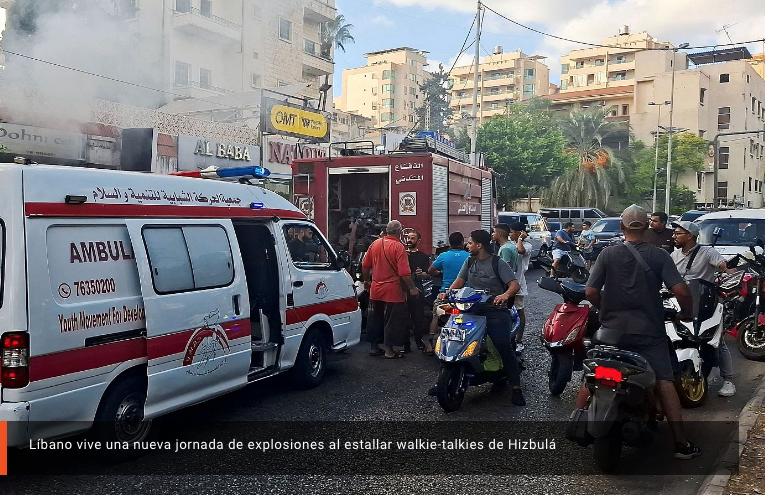 18 de septiembre del 2024.- Una nueva oleada de explosiones, esta vez en walkie-talkies usados por el grupo chií libanés Hizbulá, ha ocurrido en varios puntos del Líbano. Las detonaciones se han producido en concreto en los suburbios del sur de Beirut, así como en el sur y el este del Líbano, según han indicado a la agencia AFP fuentes cercanas al partido.