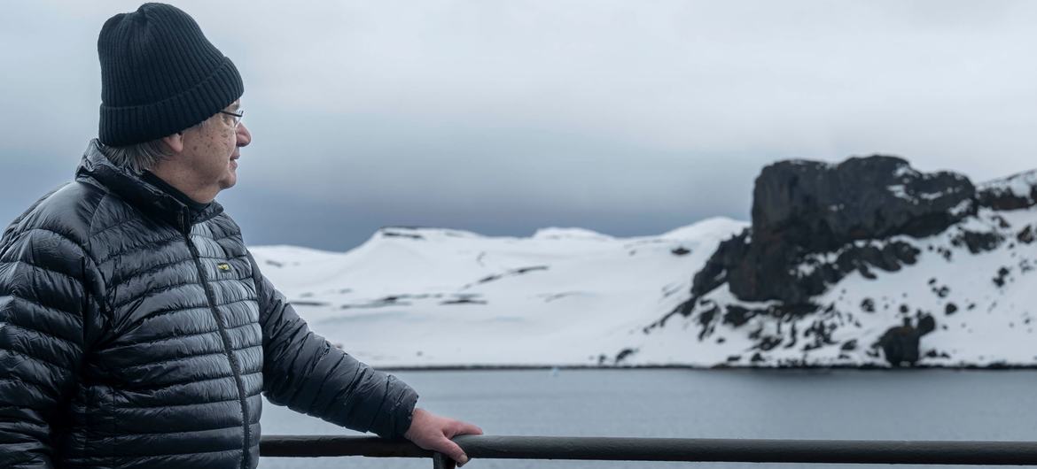 El Secretario General, António Guterres, durante su visita a la Antártida