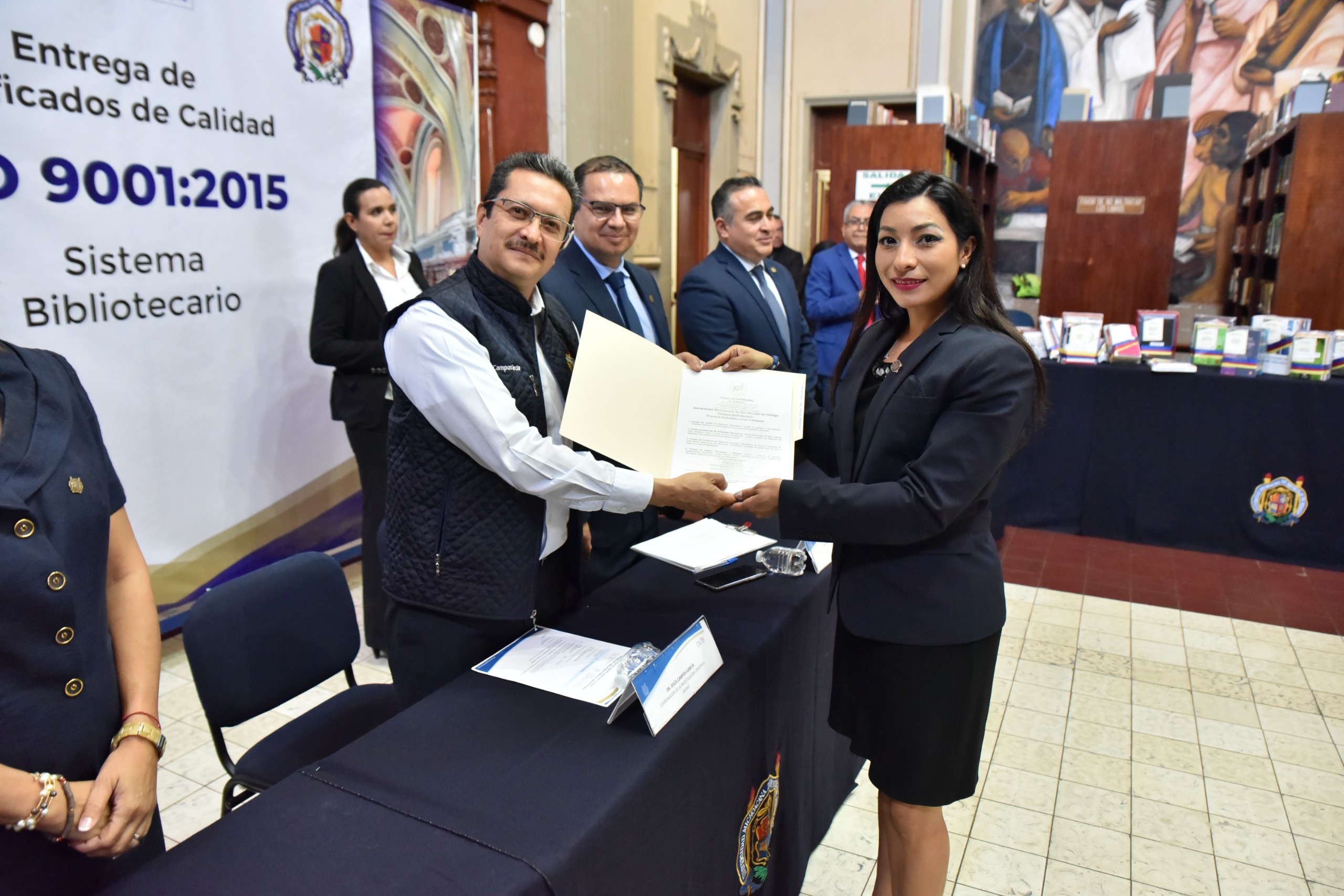 Destacó la entrega de estas tres certificaciones con lo cual consideró que se está reconociendo la labor de quienes iniciaron este trabajo de implantación del Sistema de Calidad bajo la Norma ISO-9001 en el Sistema Bibliotecario de la UMSNH.