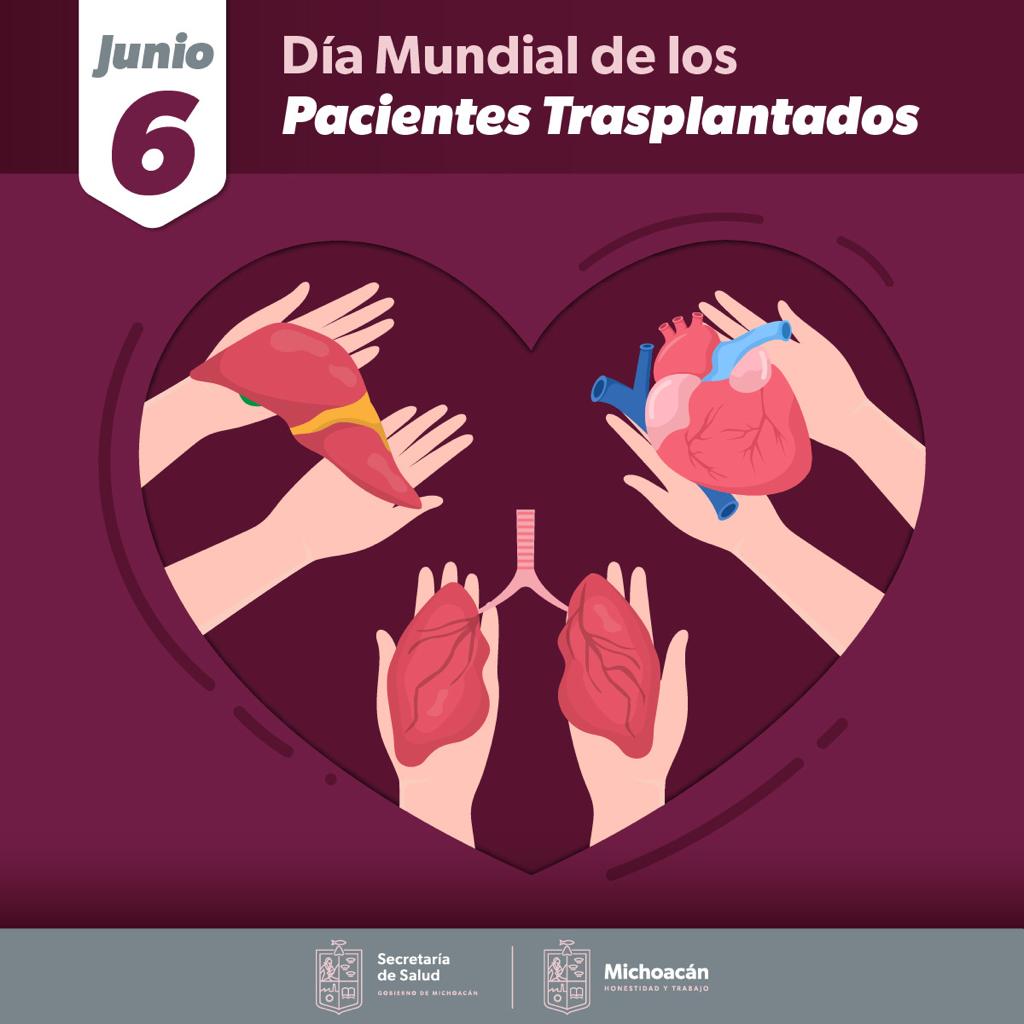 Morelia, Michoacán, 6 de junio de 2023.- Bajo el lema suma vidas, dona órganos, Michoacán conmemora el Día Mundial de los Pacientes Trasplantados, para hacer conciencia sobre la cultura de donación de órganos que permite salvar vidas, a 20 años de que se realizara en la entidad el primer trasplante de forma continua.