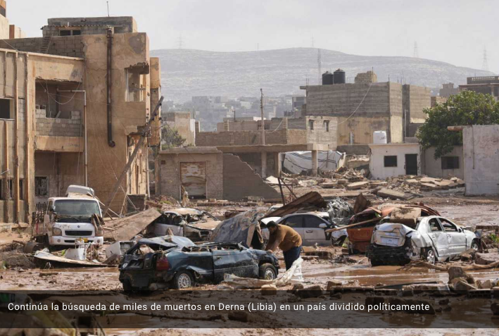 Los trabajos de búsqueda y rescate continúan en la ciudad y otras localidades afectadas en el este del país, donde alrededor de 34.000 personas se han visto desplazadas -incluidas 30.000 en Derna-, según datos de la Organización Internacional para las Migraciones (OIM).