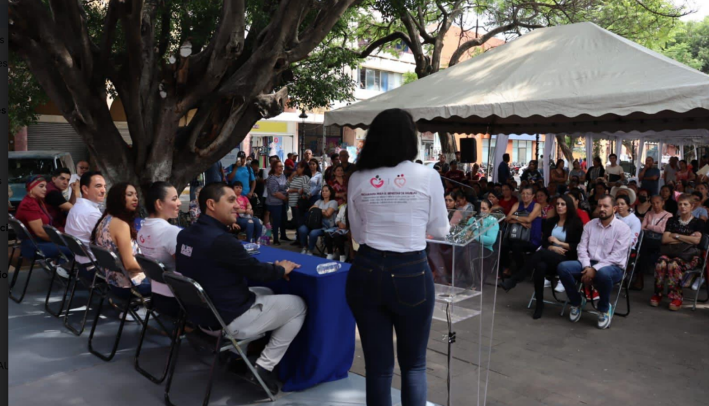 La titular de Bienestar en Michoacán, Giulianna Bugarini Torres, junto al presidente municipal, Carlos Soto, encabezaron la entrega de 85 apoyos para mujeres con cáncer de mama o cervicouterino, y 17 más para las familias cuidadoras de las y los niños con padecimiento oncológico.