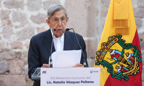 El tres veces candidato a la Presidencia de la República asistió a la ciudad de Morelia para fungir como orador oficial en el aniversario de Natalio Vázquez Pallares, en la explanada que se ubica a un costado del Mercado de Dulces.