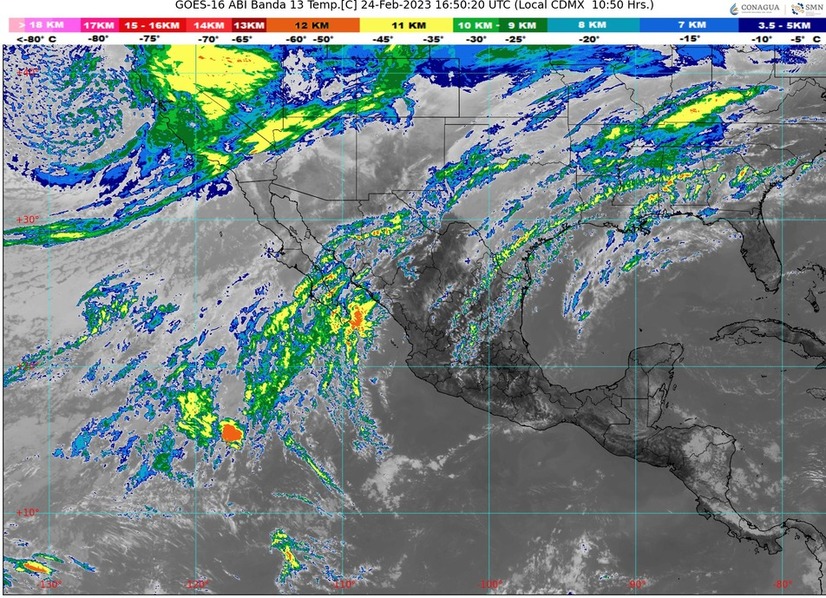 CDMX, 24 de febrero del 2023.- Este día viernes, la aproximación de un nuevo frente frío al estado de Baja California, en interacción con una vaguada polar al norte de dicha entidad y con la corriente en chorro polar, originarán vientos fuertes con tolvaneras en la Península de Baja California, así como lluvias puntuales fuertes y probabilidad para la caída de nieve o aguanieve en las sierras de Baja California. También, se prevé oleaje de 2 a 3 metros en la costa occidental de la Península de Baja California.