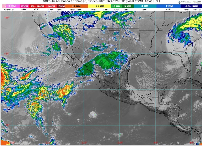 CDMX, 12 de febrero del 2023.- Este día domingo, la masa de aire frío que impulsó al frente Núm. 31, modificará sus características térmicas en el transcurso del día, permitiendo un gradual ascenso de las temperaturas del norte, noreste, centro, oriente y sureste del país; sin embargo, continuará el evento de “Norte” intenso en el Istmo y Golfo de Tehuantepec; además de fuerte en la Península de Yucatán y disminuyendo al final del día. También, se mantendrán los bancos de niebla sobre el oriente y sureste de México.
