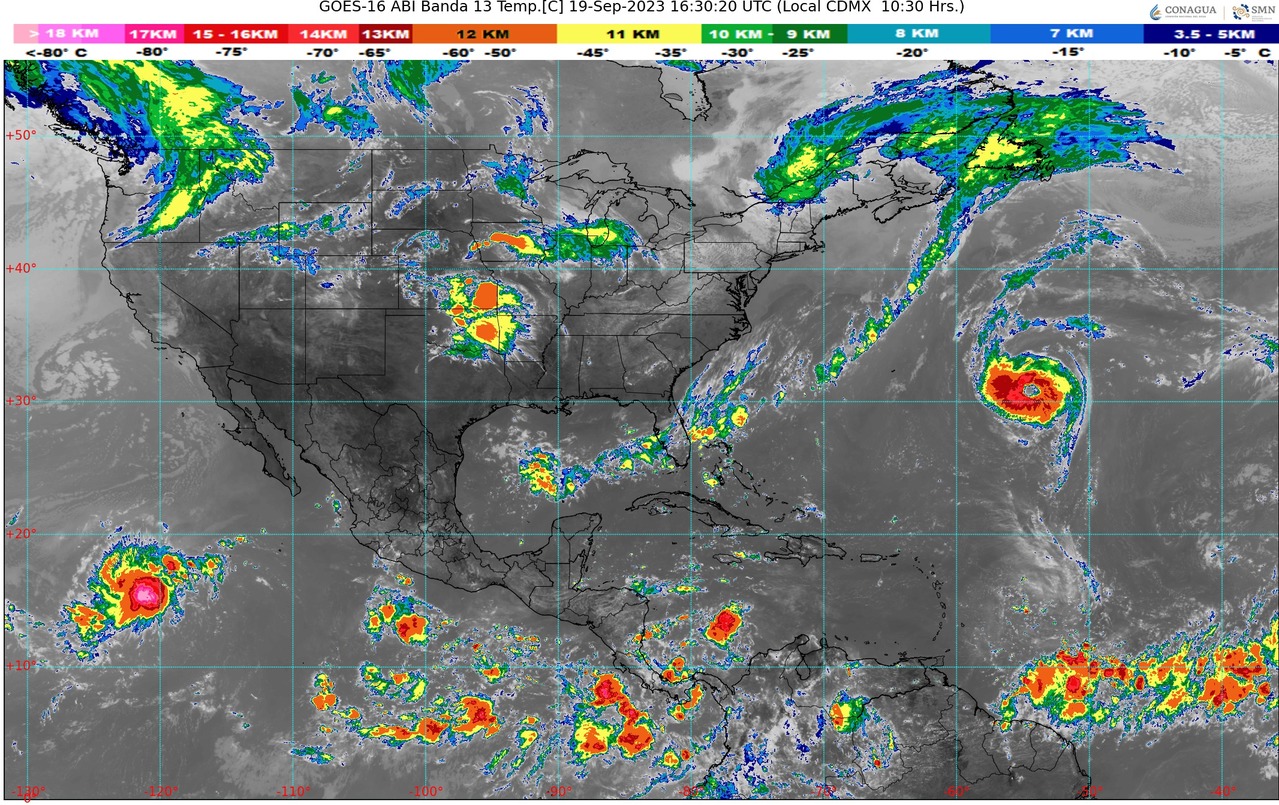 CDMX, 19 de septiembre del 2023.- Para hoy martes, el monzón mexicano en el noroeste del país, en combinación con el ingreso de humedad del Océano Pacífico, ocasionará lluvias fuertes a muy fuertes con descargas eléctricas y rachas de viento en Sinaloa, Chihuahua y Durango.