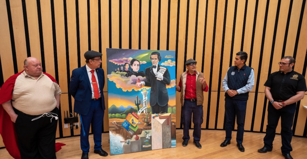 Morelia, Mich; a 16 de diciembre del 2022.- La obra pictórica “Multilegado de Melchor Ocampo” de José Antonio Alfaro Delgado fue la triunfadora en el concurso de pintura al que convocaron la Asociación de Ex Alumnos Nicolaitas y la Universidad Michoacana de San Nicolás de Hidalgo, a través de la Secretaría de Difusión Cultural y Extensión Universitaria.