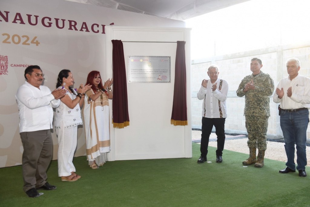 En compañía de la secretaria de Medio Ambiente y Recursos Naturales, María Luisa Albores González; el secretario de la Defensa Nacional, Luis Cresencio Sandoval González; el director general de la Comisión Nacional del Agua, Germán Martínez Santoyo y el presidente municipal de Calakmul, Luis Enrique Alvarado Moo, el jefe del Ejecutivo develó la placa inaugural, en cuyo texto resalta: “El Gobierno de México hace entrega a la población del municipio de Calakmul, Campeche, el Acueducto Adolfo López Mateos, obra que contribuirá al desarrollo y progreso de la región”.