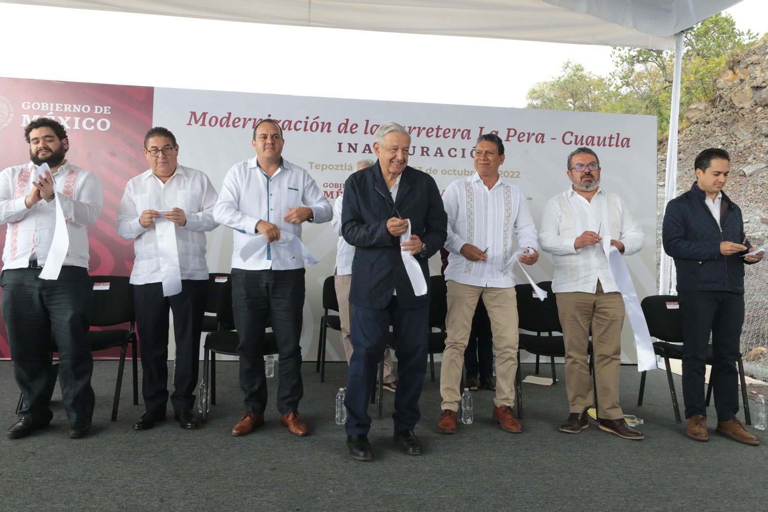 Acompañaron al presidente, el gobernador de Morelos, Cuauhtémoc Blanco Bravo; el subsecretario de Infraestructura de la Secretaría de Infraestructura, Comunicaciones y Transportes, Jorge Nuño Lara; el subsecretario de Egresos de la Secretaría de Hacienda y Crédito Público, Juan Pablo de Botton Falcón; el director general del Banco Nacional de Obras y Servicios, Jorge Mendoza Sánchez; el procurador Agrario, Luis Hernández Palacios Mirón; la directora general de Caminos y Puentes Federales de la Secretaría de Infraestructura, Comunicaciones y Transportes, Elsa Julita Veites Arévalo; el secretario de Movilidad y Transporte de Morelos, Víctor Mercado Salgado y el presidente municipal de Tepoztlán, David Demesa Barragán.