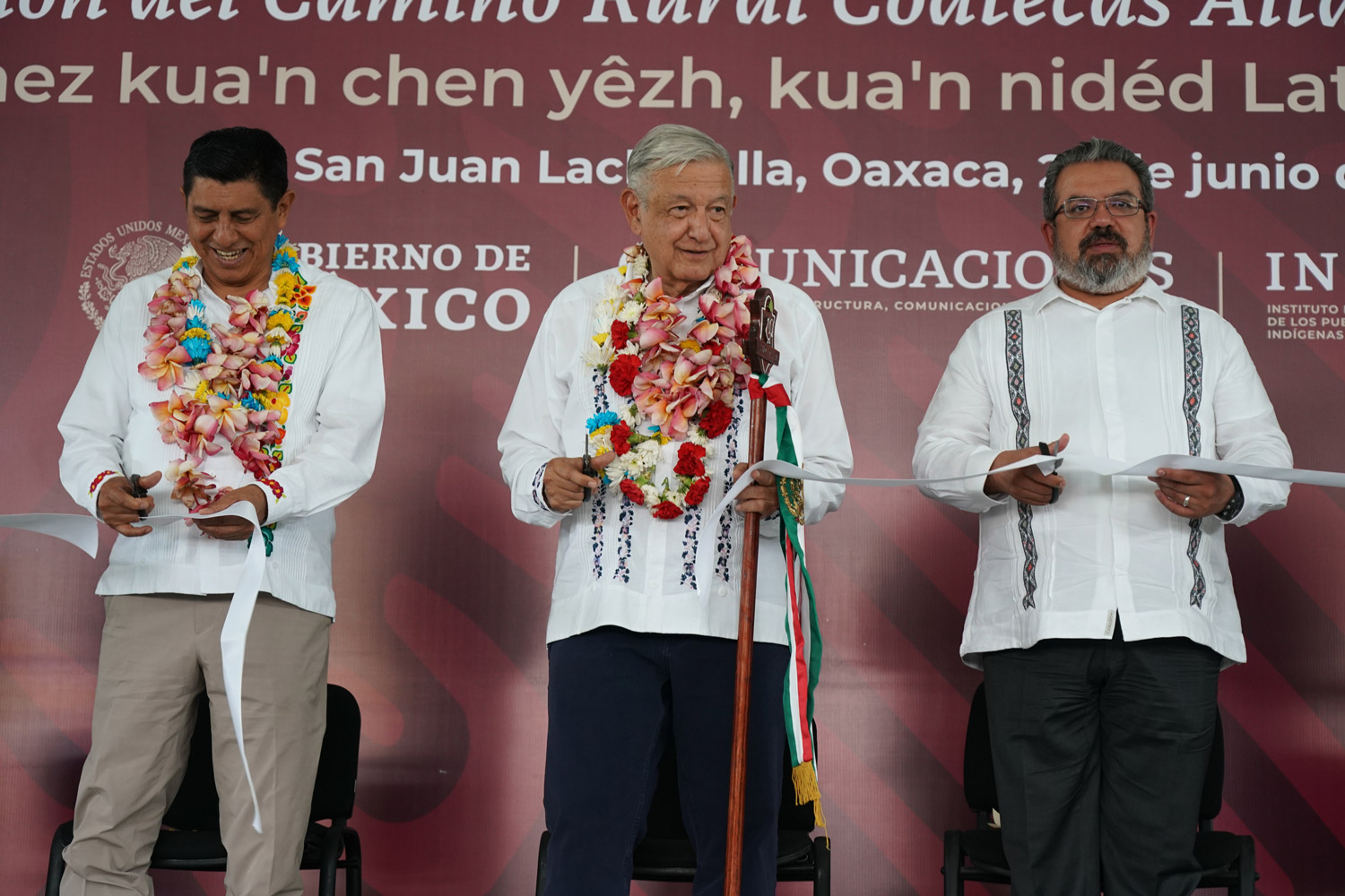 25 de junio del 2023.- Al encabezar la inauguración del camino rural Coatecas Altas a San Juan Lachigalla, en Oaxaca, el presidente Andrés Manuel López Obrador reconoció el humanismo de las comunidades indígenas; sostuvo que es fundamental aplicar su experiencia y principios en la sociedad actual.