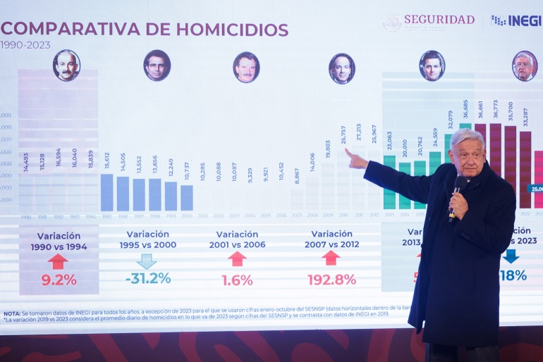 En cuanto al crecimiento del Producto Interno Bruto (PIB) dio a conocer que México reporta 1.1 por ciento en el tercer trimestre del 2023, periodo en el que hay una variación real de 4.1 por ciento respecto al cuarto trimestre del año pasado. El mandatario pronosticó un crecimiento de 1.3 por ciento promedio anual en el sexenio.