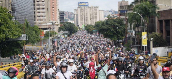 “¡Y va a caer, y va a caer, este gobierno va a caer!”, gritaban manifestantes bajo la lluvia en la gigantesca barriada de Petare, la mayor de Caracas. “¡Que entregue el poder ya!”, exclamaban otros.
