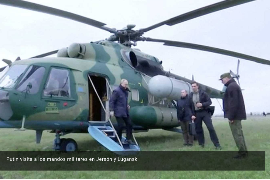 En Jersón, el presidente ruso asistió a una reunión del mando militar, donde ha escuchado los informes de los comandantes de las fuerzas aerotransportadas y del grupo de ejército “Dniéper”, así como de otros altos oficiales, según informa el Kremlin, que ha difundido un vídeo de la visita.