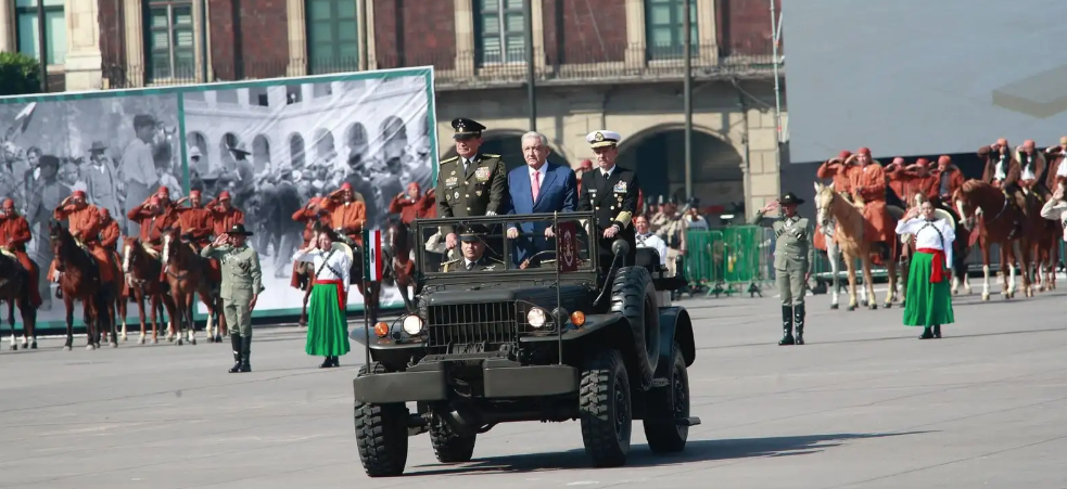 Después de expresar remembranzas de la Revolución, del asesinato de Francisco I Madero y al resaltar el movimiento armado como origen de los profundos cambios sociales que se registraron en México reivindicó: “el pueblo de Mexico tiene a su lado, como ángel de su guarda al gobierno democrático, el Ejército, la Fuerza Aérea, la Marina, la Armada de México y la Guardia Nacional”.