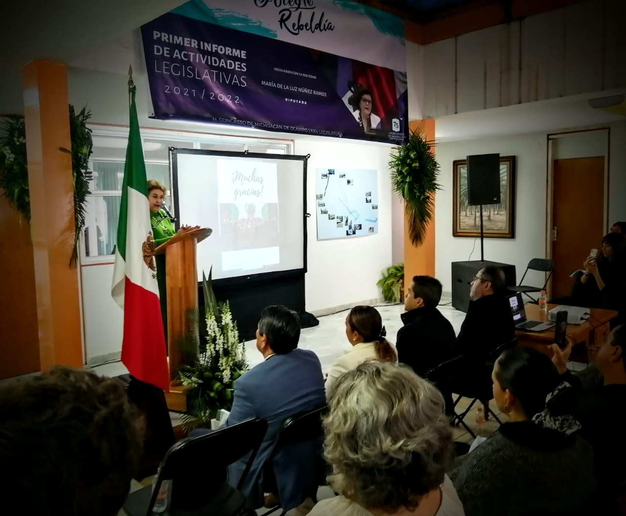Tuxpan, Michoacán, 19 de septiembre de 2022.- (566). Ante más de medio centenar de ciudadanas y ciudadanos de Tuxpan y de la Región Oriente de Michoacán, rinde la diputada María de la Luz Núñez Ramos su primer informe legislativo para el período 2021/2022.