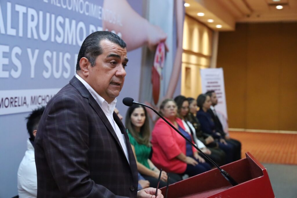 Al secretario de Salud de Michoacán, Elías Ibarra Torres, le correspondió encabezar la ceremonia de entrega de reconocimientos al Mérito y Altruismo de los Donadores y sus Familias, evento en el que el funcionario también se registró como donador voluntario en la página oficial del Consejo Nacional de Trasplantes (Cenatra) bit.ly/3YKxHIT.