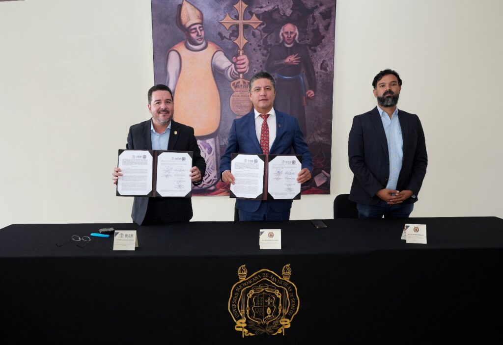 Morelia, Mich., 24 de noviembre del 2022.- La Universidad Michoacana de San Nicolás de Hidalgo (UMSNH) y el Instituto de Vivienda del Estado de Michoacán (IVEM), signaron este medio día convenio marco de colaboración interinstitucional, con lo que se fortalece uno de los principales ejes de trabajo para la actual administración nicolaita.