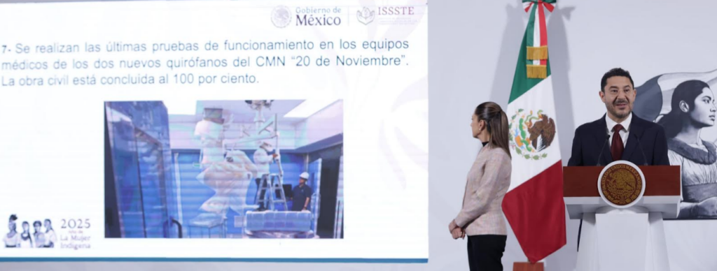 CDMX, 29 de julio de 2025.- El director general del Instituto de Seguridad y Servicios Sociales de los Trabajadores del Estado (ISSSTE), Martí Batres Guadarrama, compartió en la conferencia matutina: “La mañanera del pueblo” de la Presidenta Claudia Sheinbaum Pardo, los avances del Programa Nacional de Mejoramiento de Quirófanos del ISSSTE, el cual ha generado resultados positivos en 36 salas de operación de todo el país.