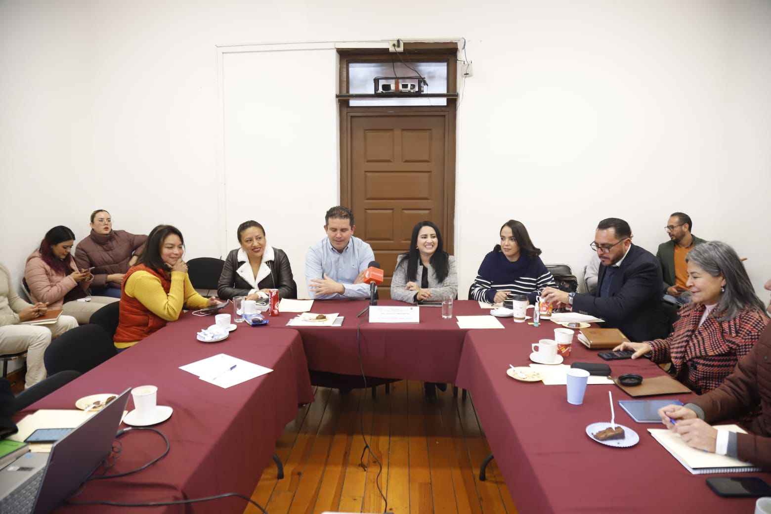 En reunión con la secretaria de Desarrollo Urbano y Movilidad, Gladyz Butanda Macías, y el titular de la Comisión Coordinadora del Transporte, Daniel Manzo Rodríguez, presidentes e integrantes de ambas comisiones, las y los legisladores Marco Polo Aguirre Chávez y Seyra Anahí Alemán Sierra, así como Julieta Gallardo Mora, Mayela del Carmen Salas Sáenz, Andrea Villanueva Cano, Eréndira Isauro Hernández, Hugo Anaya Ávila, y Baltazar Gaona García, conocieron los proyectos de ambas dependencias planteados al Poder Legislativo.