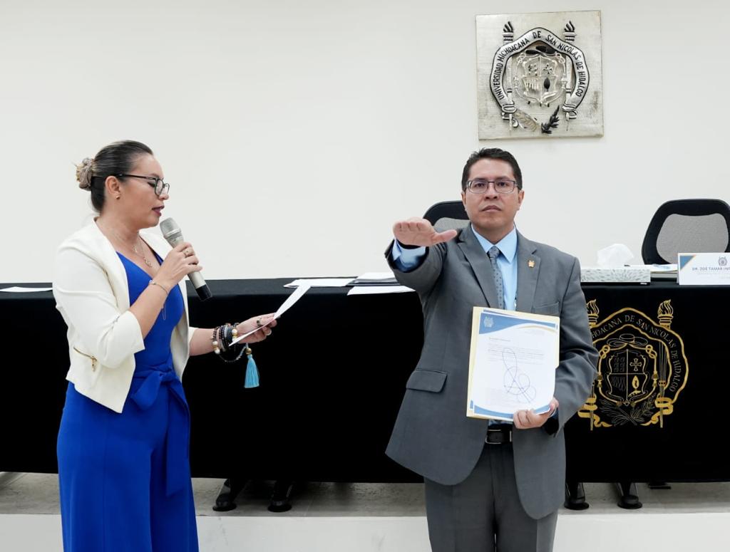Morelia, Michoacán, a 19 de junio de 2023.- En sesión del Consejo Universitario fue el electo el doctor Rigoberto López Escalera como director de la Facultad de Contaduría y Ciencias Administrativas (FCCA) de la Universidad Michoacana de San Nicolás de Hidalgo (UMSNH).