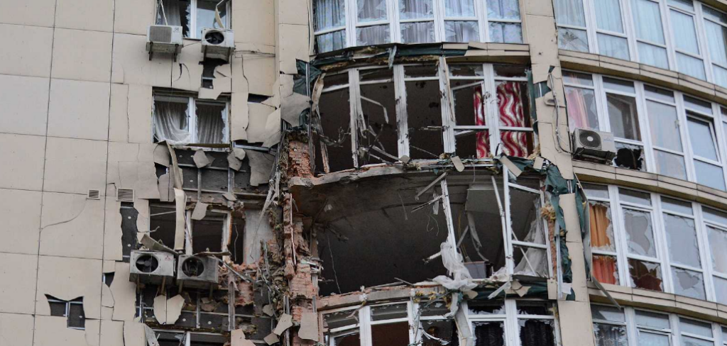 Edificio dañado en Kiev por los bombardeos masivos de este lune