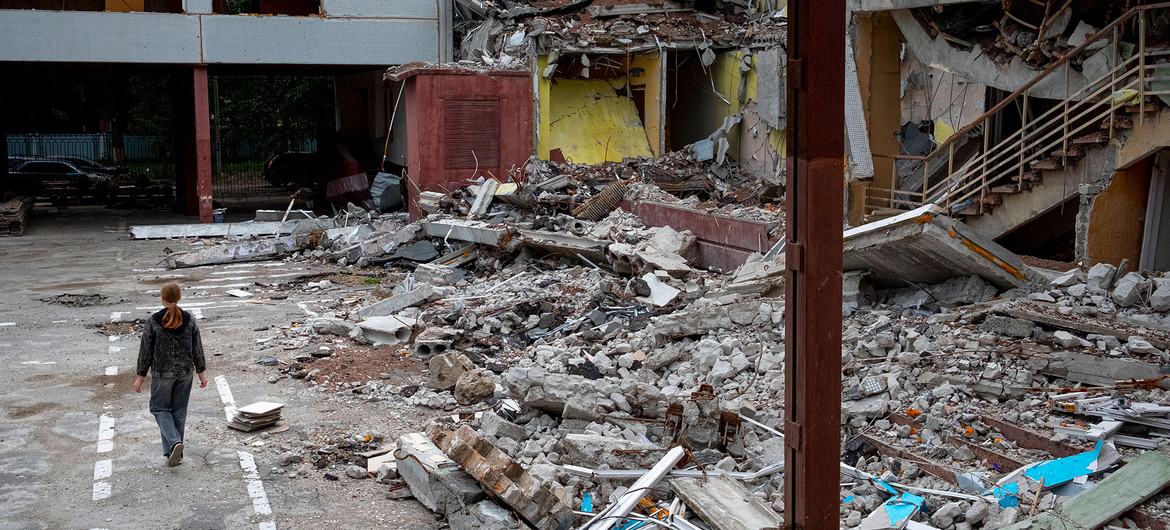 Escuela destruida en una ataque aéreo en Kharkiv, Ucrania