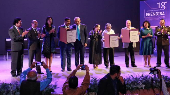 A los artistas se les otorgó la medalla, el reconocimiento y 300 mil pesos de manos del gobernador de Michoacán, Alfredo Ramírez Bedolla.
