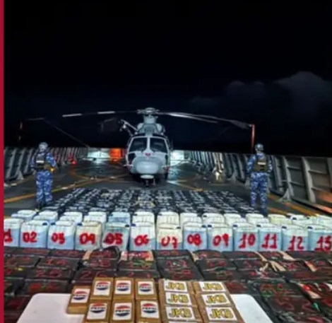 18 de octubre del 2024.- La Secretaría de Marina (Semar) en una operación considerada la más grande en materia de aseguramientos en la mar, logró el decomiso de aproximadamente 8 mil 361 kilogramos de droga y 8 mil 700 litros de combustible, además detuvo a 23 personas en el suroeste de Lázaro Cárdenas, Michoacán.
