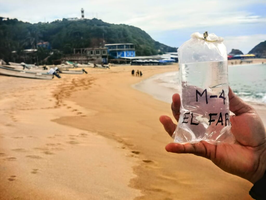 Morelia, Michoacán, 24 de noviembre de 2023.- Para determinar si el agua de las 12 playas michoacanas es apta para el recreo humano, de cara a las próximas vacaciones decembrinas, la Secretaría de Salud de Michoacán (SSM) arrancó con el muestreo prevacacional al agua de mar.