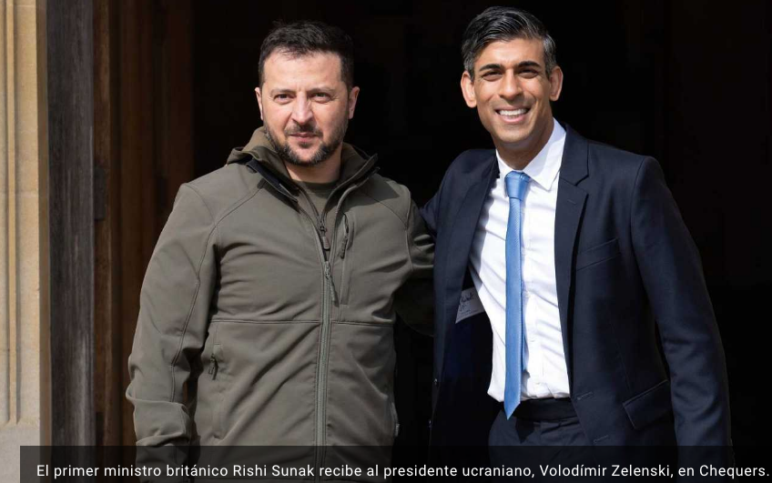 La visita sorpresa de Zelenski ha comenzado poco antes de las 11:00 (hora peninsular española), cuando ha llegado a la residencia campestre de Chequers, en las afueras de Londres, para reunirse con el primer ministro británico, Rishi Sunak, según mostraban las cadenas de televisión.