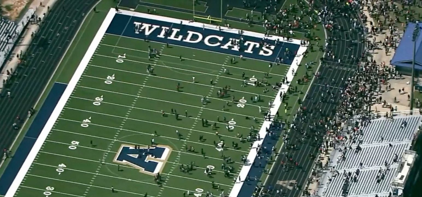 Imagen aérea de la evacuación del instituto Apalachee, en Winder