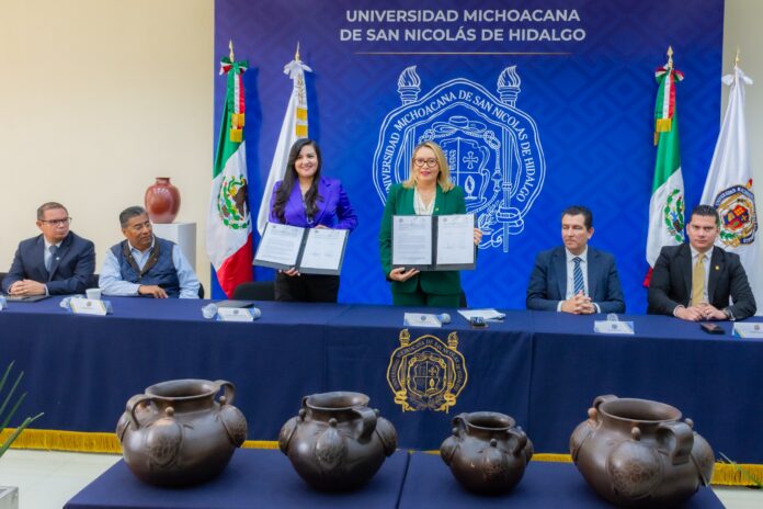 Morelia, Michoacán, a 12 de agosto de 2024.- La Universidad Michoacana de San Nicolás de Hidalgo (UMSNH) ha sido punta de lanza en implementar acciones en materia de combate a la corrupción, lo anterior quedó de manifiesto durante la firma de convenio de vinculación integral entre la rectora Yarabí Ávila González y la secretaria Técnica del Sistema Estatal Anticorrupción, Miryam Georgina Alcalá Casillas, en donde se visualizó la creación de un Consejo Anticorrupción Universitario.