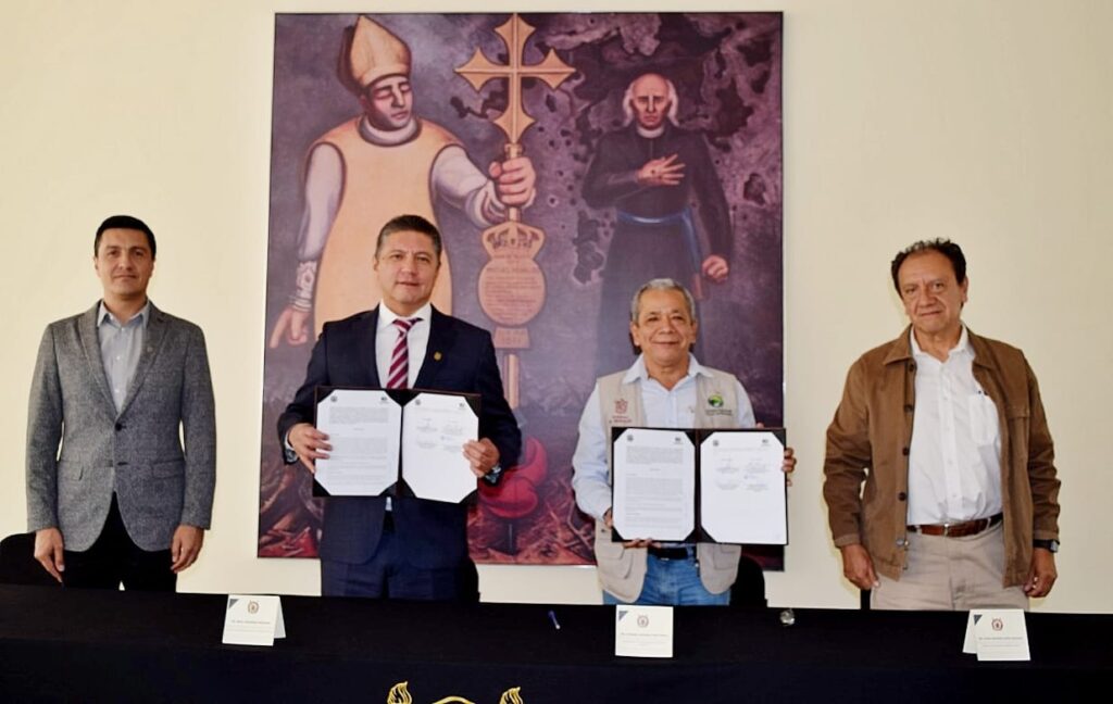 Morelia, Mich., 21 de noviembre del 2022.- La Universidad Michoacana de San Nicolás de Hidalgo (UMSNH) y la Comisión Forestal del Estado (COFOM) signaron un convenio marco de colaboración en materia académica, científica y cultural, a fin de realizar actividades conjuntas que permitan impulsar y fortalecer el desarrollo y aprovechamiento sustentable de los recursos forestales en el estado, así como propiciar la formación e intercambio de recursos humanos y el desarrollo de investigaciones conjuntas.