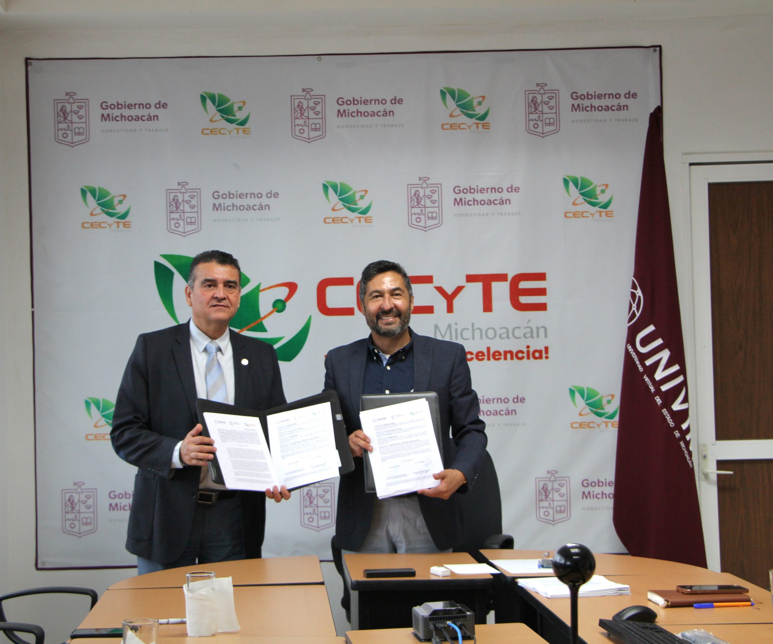 Morelia, Michoacán, 4 de octubre del 2022.- El Colegio de Estudios Científicos y Tecnológicos del Estado de Michoacán (Cecytem), a través de su director general, Víctor Manuel Báez Ceja, firmó convenio de colaboración con la Universidad Virtual del Estado de Michoacán (Univim).