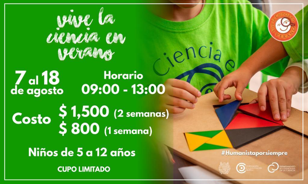 Las inscripciones para el curso “Vive la ciencia en verano” están abiertas, el cual tendrá un costo de mil 500 pesos por dos semanas y 800 pesos por una semana, en las fechas antes señaladas, en un horario de las 9:00 a las 13:00 horas.